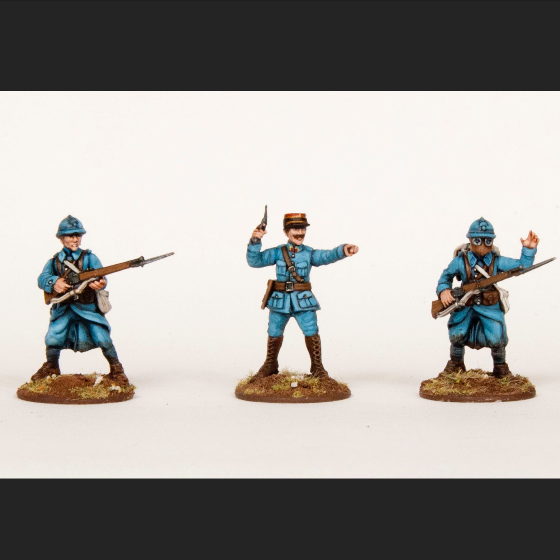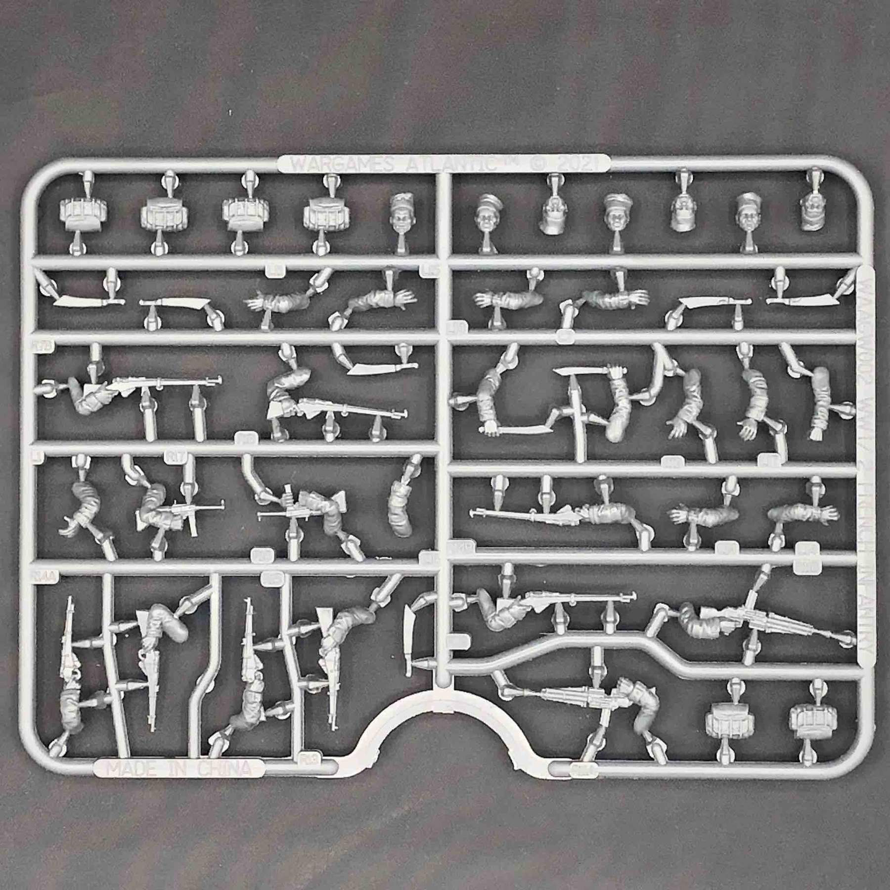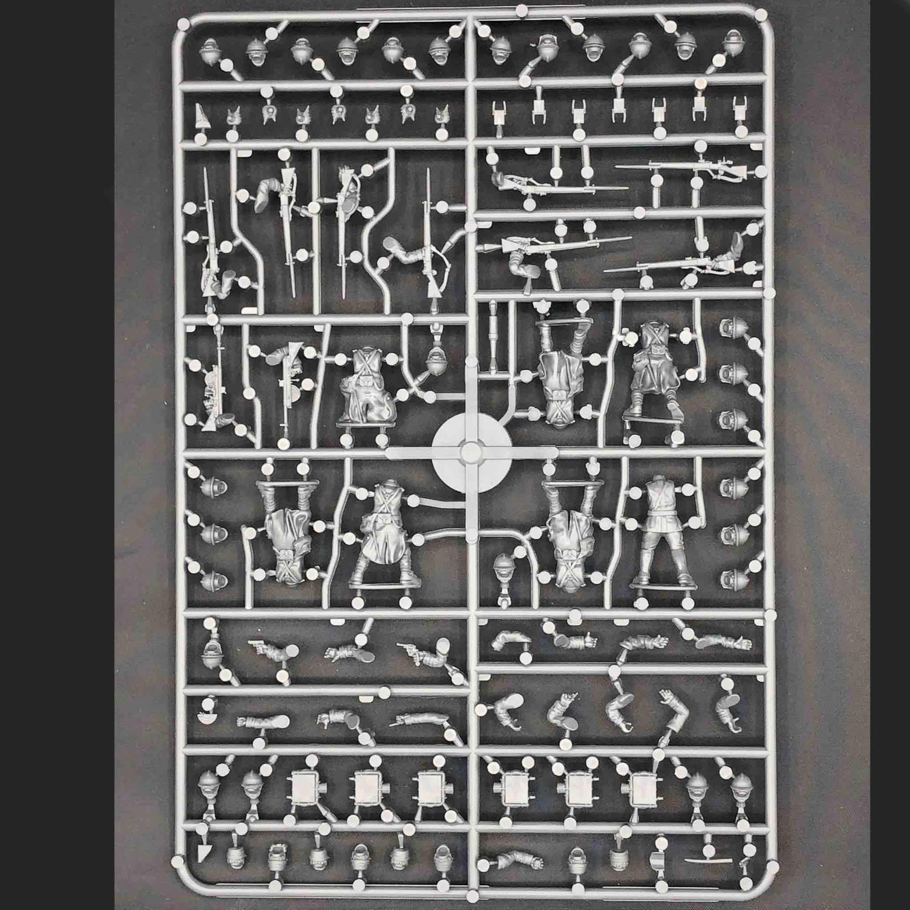 Этот набор из твердого пластика позволяет собрать до 35 французских пехотинцев, экипированных для Первой или Второй мировых войн (с достаточным количеством винтовок и голов каждого типа для всех фигурок в коробке).