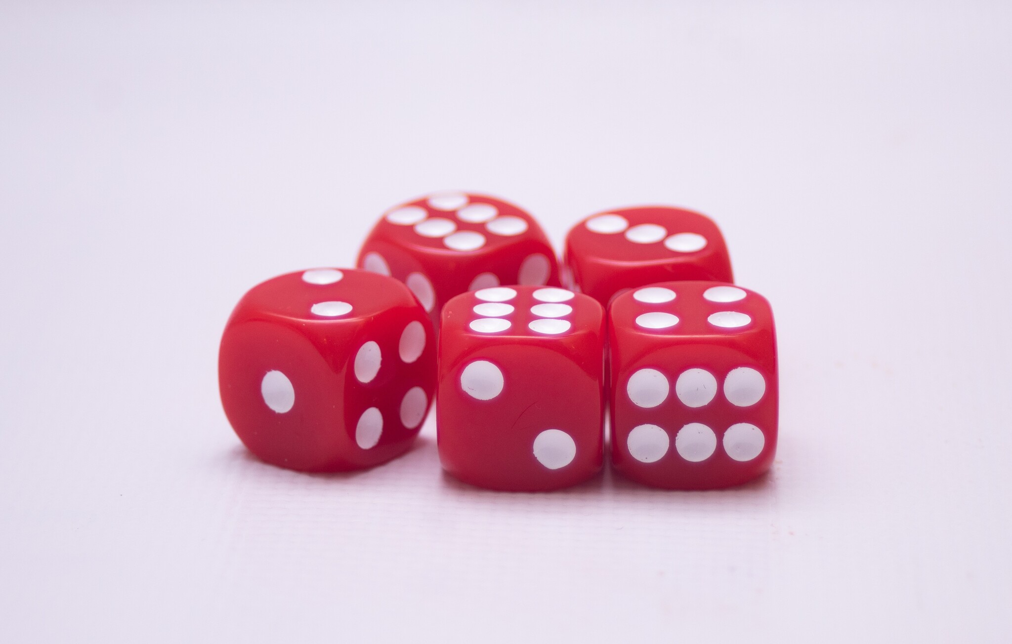Кости Д6 12 мм. одноцветные округлые края красные - 5 шт.