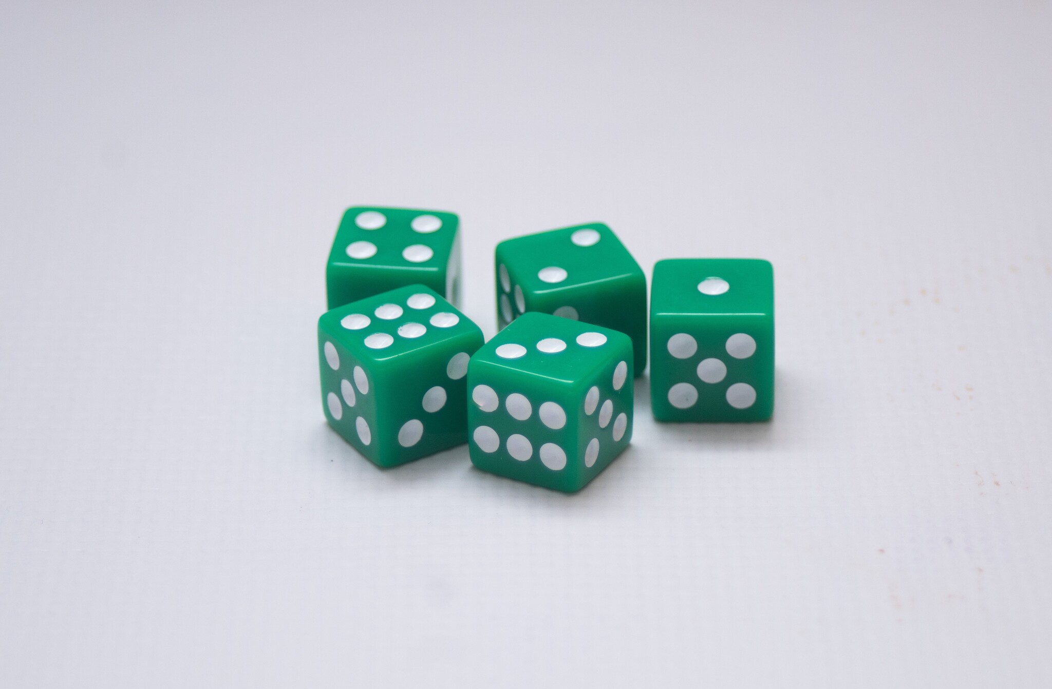Кости Д6 12 мм. одноцветные острые края зеленые - 5 шт.